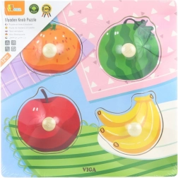 Vi præsenterer træpuslespillet med frugter fra Viga, som ikke kun fungerer som en traditionel puslespilsklassiker, men også hjælper dit barn med at udvikle finmotorik, formgenkendelse og koordineringsevner. Puslespillet indeholder 4 brikker i form af frugter med enkle knopper for let greb.