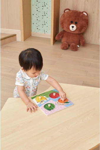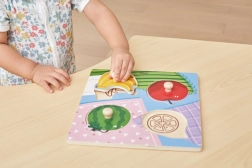 Puslespillet indeholder brikker med knopper for nem håndtering selv for de mindste børn.