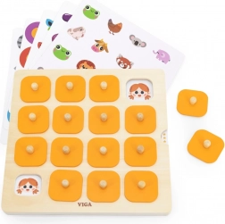 Den robuste træbase med dæksler på knopper støtter finmotorik og hånd–øje-koordination. Illustrationerne dækker dyr, planter og hverdagsting, hvilket naturligt udvider kendskabet til verden. Ideelt til både individuel og gruppeleg derhjemme og i børnehaver.