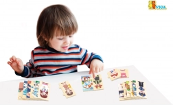 Takket være de robuste træbrikker, der ligger godt i små hænder, træner børn greb, hånd–øje-koordination, koncentration og kommunikationsfærdigheder. Illustrationerne er klare, farverige og motiverer til gentagen leg og indlæring af nye ord.