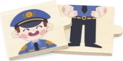 Den didaktiske træleg fra VIGA introducerer børn til forskellige professioner – fra læge og brandmand til kok eller astronaut. Hver profession består af tre dele: to til figuren og én større til arbejdsstedet. Børnene samler først den rigtige figur og forbinder den derefter med miljøet.