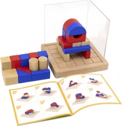Sættet indeholder 26 bøgetræsklodser, 2 akrylpaneler, en stabil base og et instruktionshæfte. Materialerne er holdbare, sikre og behagelige at røre ved. Legen understøtter koordinationsevner, rumlig perception, kreativitet og tålmodighed.