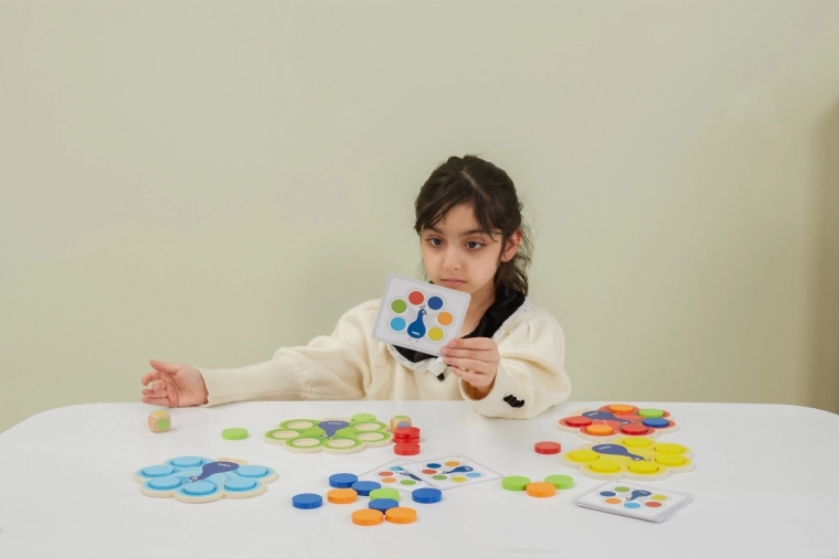 - Genkendelse af farver, logisk tænkning, finmotorik, øje–hånd‑koordination, koncentration