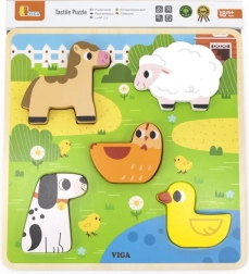 VIGA bruger kvalitetstræ og glatte overflader for sikker leg. De tykke brikker er nemme at holde om, så de er perfekte til små børnehænder. Puslespillet støtter selvstændighed, koncentration og kreativ leg.