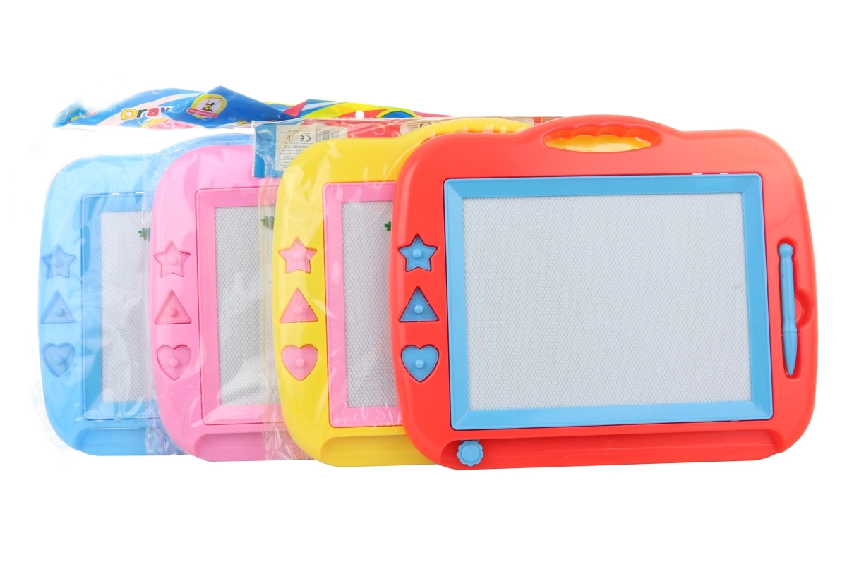 Oplev glæden ved endeløs tegning med en praktisk plastplade på ca. 35 × 29 cm. Den magnetiske overflade gør det muligt for børn at lave billeder, stemple og slette alt med ét swipe og starte forfra. Perfekt til at udvikle fantasi og træne greb.