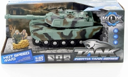 Oplev actionfyldt leg med en børnetank i mørk camouflage. Realistisk ledsagelse sikres af lydeffekter af skud og en lysende kanon ved tryk på en knap. Takket være svinghjulet kører tanken let ligeud uden behov for fjernbetjening.