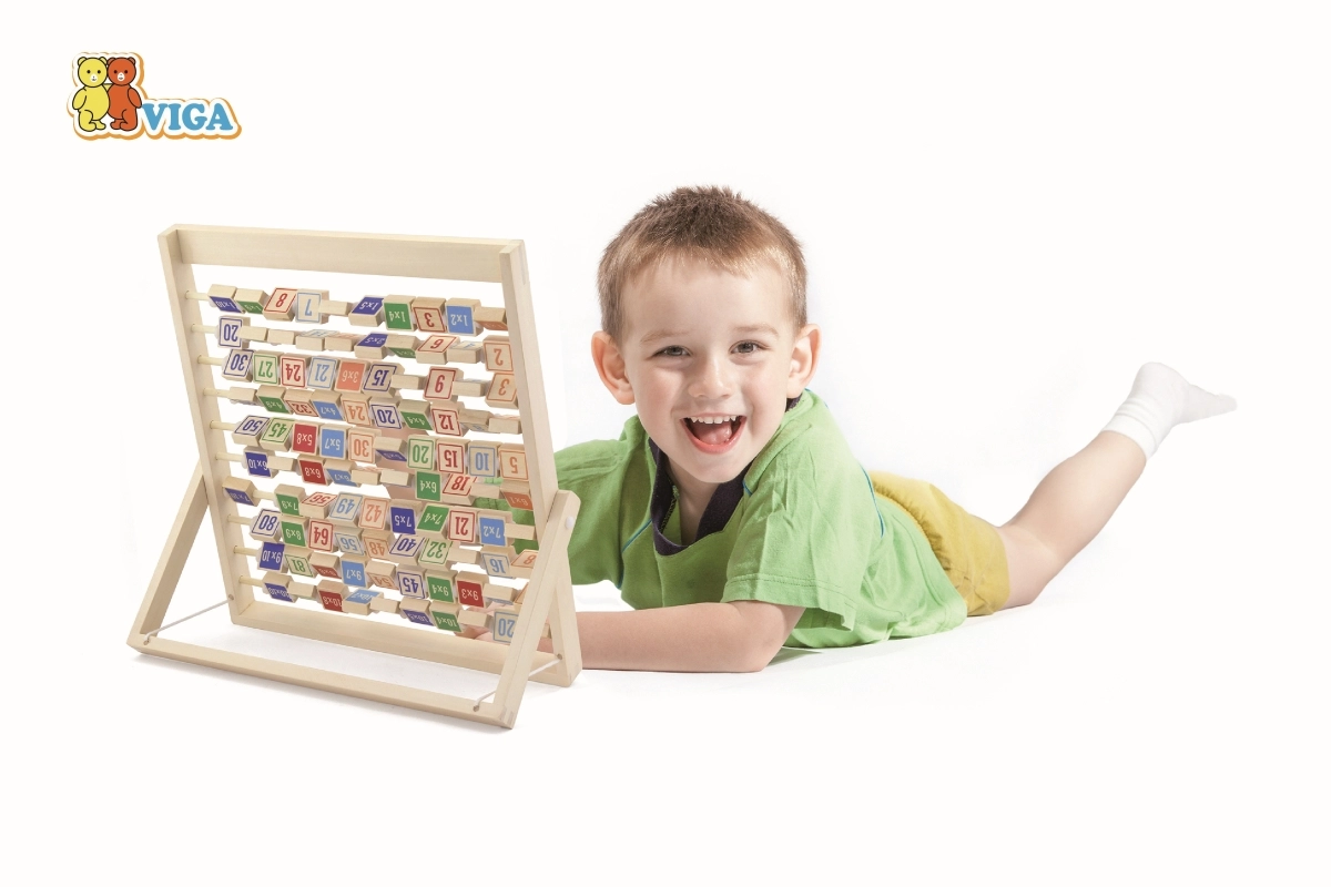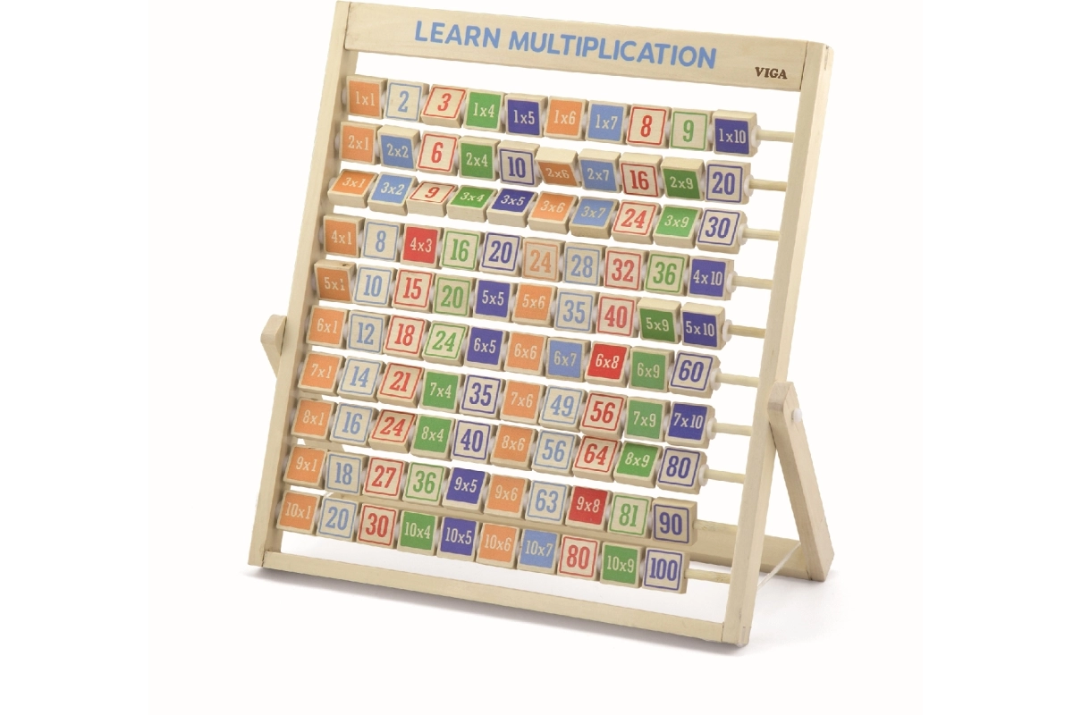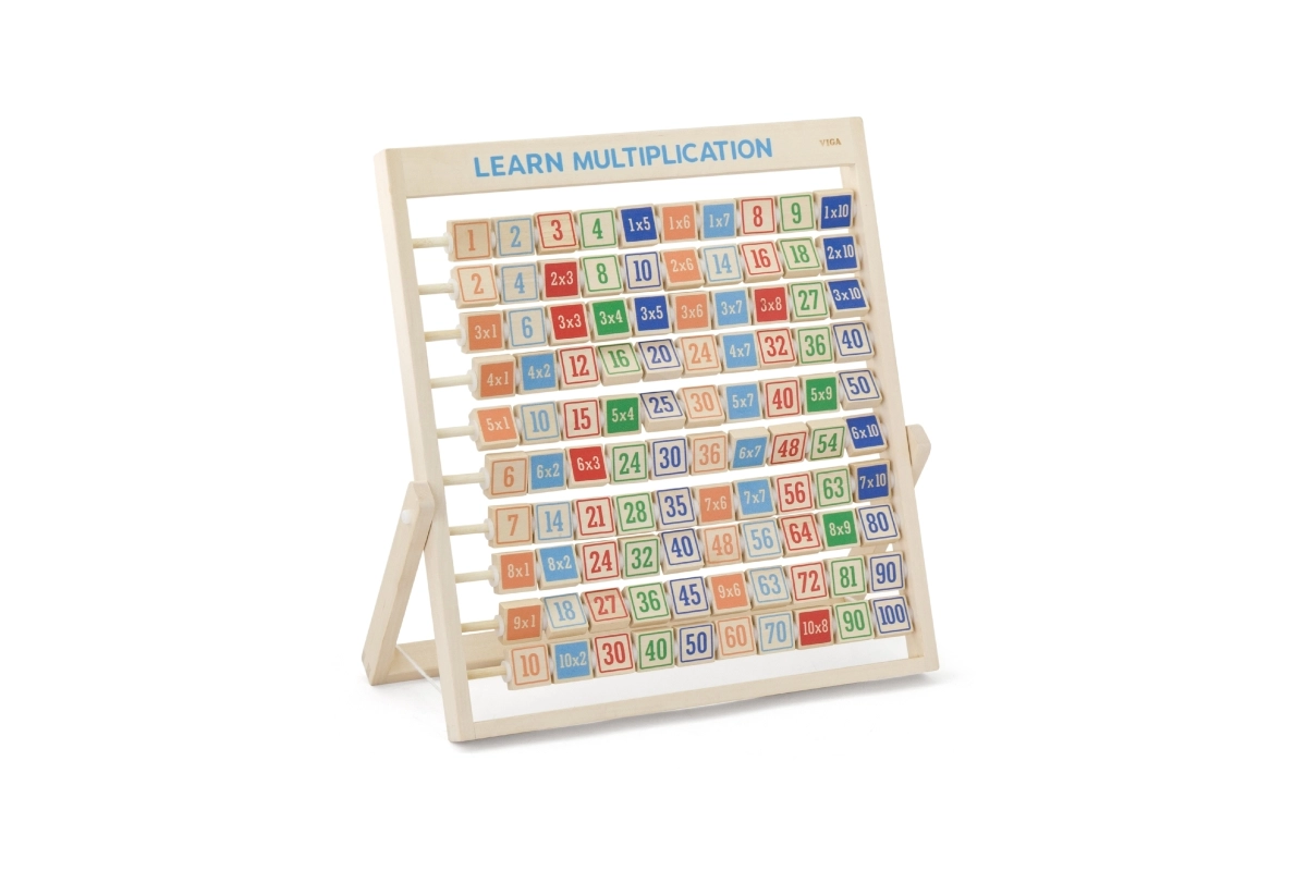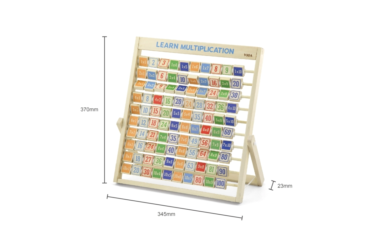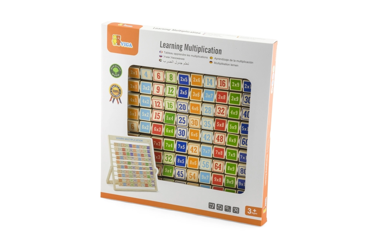 Denne kvalitets trætabel til multiplikation udvikler logisk tænkning, koncentration og finmotorik. Takket være den overskuelige opdeling og de farvede klodser forstår børn hurtigt principperne i multiplikation og kan når som helst tjekke dem ved at vende klodsen med det korrekte resultat.