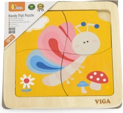Dette søde træpuslespil med en farverig sommerfugl er et godt valg som introduktion til puslespil. De fire robuste brikker er nemme at holde for små hænder og lægges i en solid træbakke med forlæg. Én brik har en praktisk åbning for nem udtagning, så børn hurtigt lærer at håndtere brikkerne og lægge dem igen.