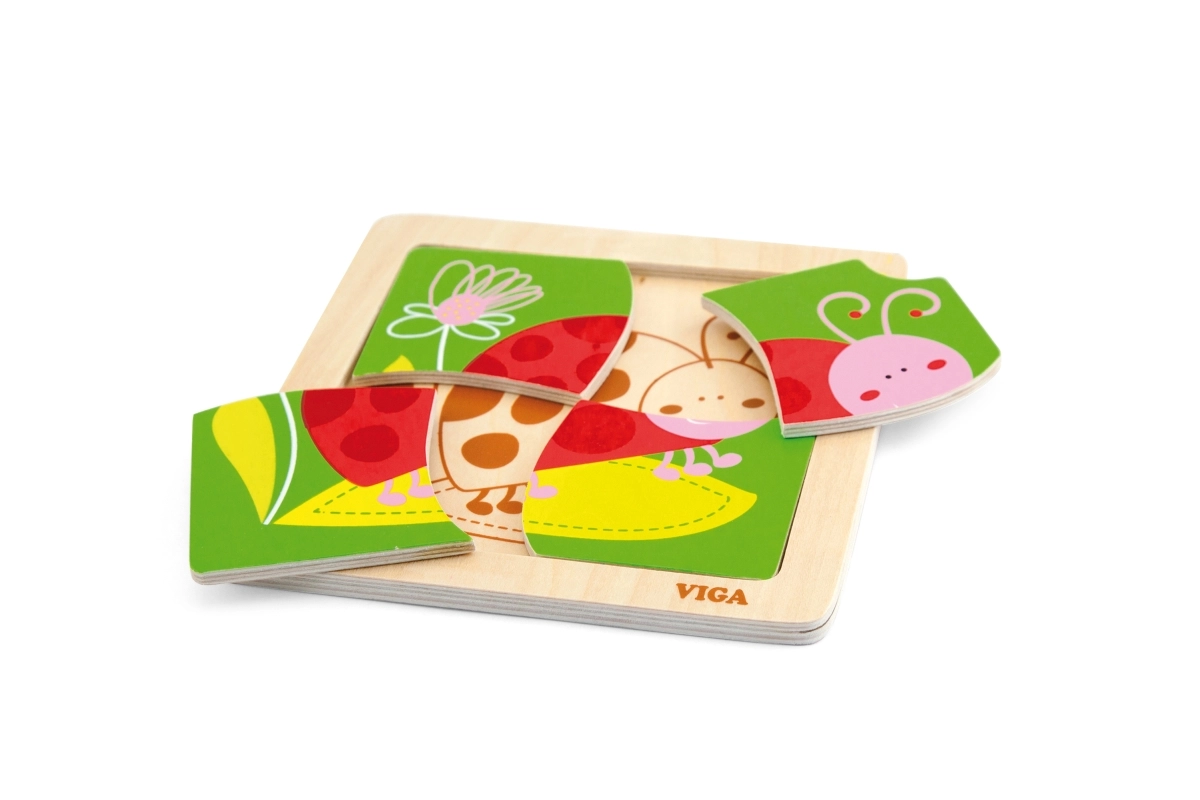 Dette enkle træpuslespil med mariehøne er en fantastisk første puslespilsoplevelse for små børn. Takket være de robuste, glatte brikker ligger de godt i hånden og er lette at sætte i rammen. Det livlige motiv opmuntrer til leg og fremmer koncentration.