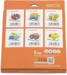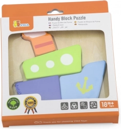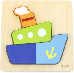 Vigas træ mini-puslespil er et ideelt første puslespil til tumlinger og førskolebørn. De fire farverige brikker passer præcist i det udfræsede formhul i pladen og danner et muntert billede af en båd, når de er samlet. Enkle former og stærke farver motiverer børn til gentagen leg og styrker deres naturlige nysgerrighed.