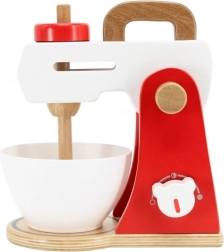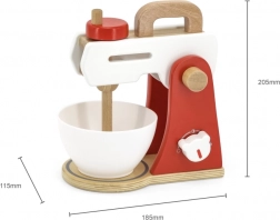 Mixeren har et rød-hvidt design og træelementer, der gør den til en realistisk kopi af en ægte køkkenmaskine.