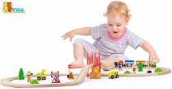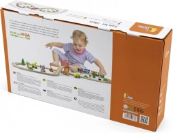 Dyk ned i en verden af leg og fantasi med denne robuste trætogbane, som er ideel til små togentusiaster. Togbanen er designet med fokus på børns sikkerhed takket være kvalitetsmaterialer og solide samlinger.