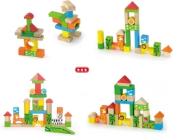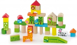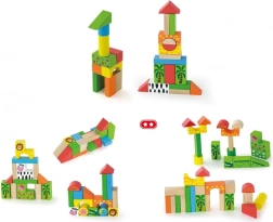 Farverigt sæt træklodser med zoo-motiver til børn fra 2 år. I spanden finder du 50 dele og en billedbrochure med byggevejledninger i tre niveauer. Understøtter kreativitet, finmotorik og rumlig forestillingsevne, desuden med praktisk spand for nem opbevaring.