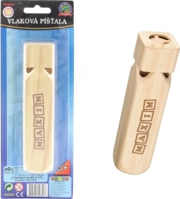 Den træbaserede togfløjte fra Maxim er en fantastisk ledsager for alle tog-entusiaster. Blæs i den, og du hører en autentisk lyd af en damplokomotivfløjte, som giver enhver leg den rette stemning af en rigtig jernbane.
