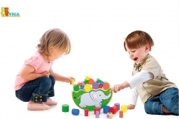 Dette smarte balancespil med elefant bringer spænding og glæde til hver runde. Børn arbejder med farvede cylindre efter terningekastet og lærer balance, farvegenkendelse og bevægelsessamspil. Spillet er lavet af glatforarbejdet træ med livlige, sikre farver.
