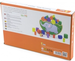 Den buede elefantbase og cylindre i forskellige størrelser lærer børn at balancere følsomt og placere delene præcist.
