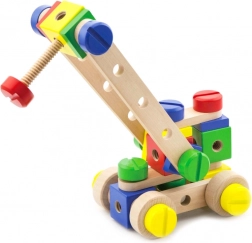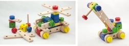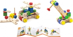 Dette kvalitetsbyggesæt i træ giver børn uendelige muligheder for at skabe. Med 53 farvede dele, dyvler, skruer og forbindelser bygger de let enkle modeller og fantasifulde konstruktioner. Sættet indeholder en overskuelig billedbrochure, som inspirerer og trin for trin guider gennem de første projekter.