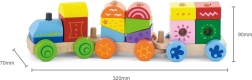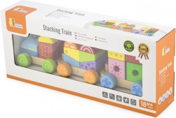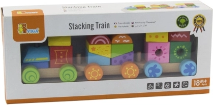 Den sikre trækvalitet, glatte kanter og mættede farver indbyder til at udforske og gentage stablingen igen og igen. Legetøjet hjælper med at øve formsortering, tælling og at skabe egne kombinationer – fra enkel bygning til kreative “toghistorier”.