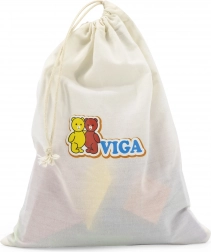Glatte geometriske former i træ med matte, giftfrie farver er sikre og behagelige at røre ved. Understøtter læring af farver og former samt finmotorik.