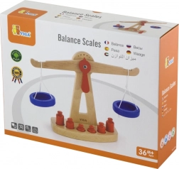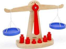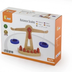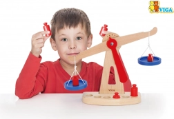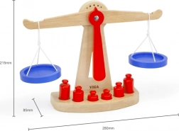 Træ balancevægten fra Viga er udstyret med to blå skåle ophængt i snore og inkluderer seks røde vægte i forskellige størrelser. Takket være sit farverige design og sikre overfladebehandling bringer denne vægt masser af sjov til børn. Vægten er designet til at motivere børn til at bruge deres fantasi og kreativitet under leg, hvilket hjælper dem med at forstå grundlæggende matematiske koncepter og værdien af balance.