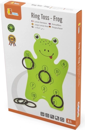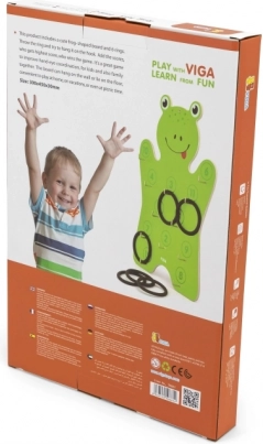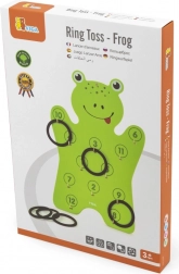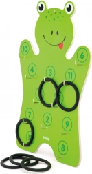 Indeholder en træplade formet som en frø og 6 ringe – det er bare at pakke ud og begynde at kaste.