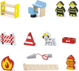 I pakken findes alt, hvad små brandfolk behøver: køretøjer, figurer og tematisk tilbehør. De kompakte mål gør det let at lege både på bordet og på børneværelset, og sættet kan nemt ryddes op i kassen igen.