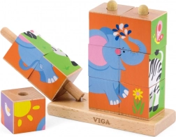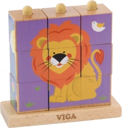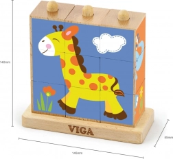 Viga Safari skubbe-pusleklodser er et tidløst legetøj, der naturligt guider børn til at lære gennem leg. Ni glat forarbejdede klodser på en stabil base gør det muligt at samle fire farverige dyremotiver. Takket være de vippende pinde drejer klodserne nemt, og børn finder hurtigere det rigtige stykke.
