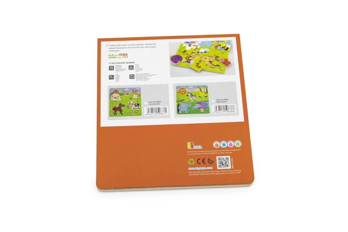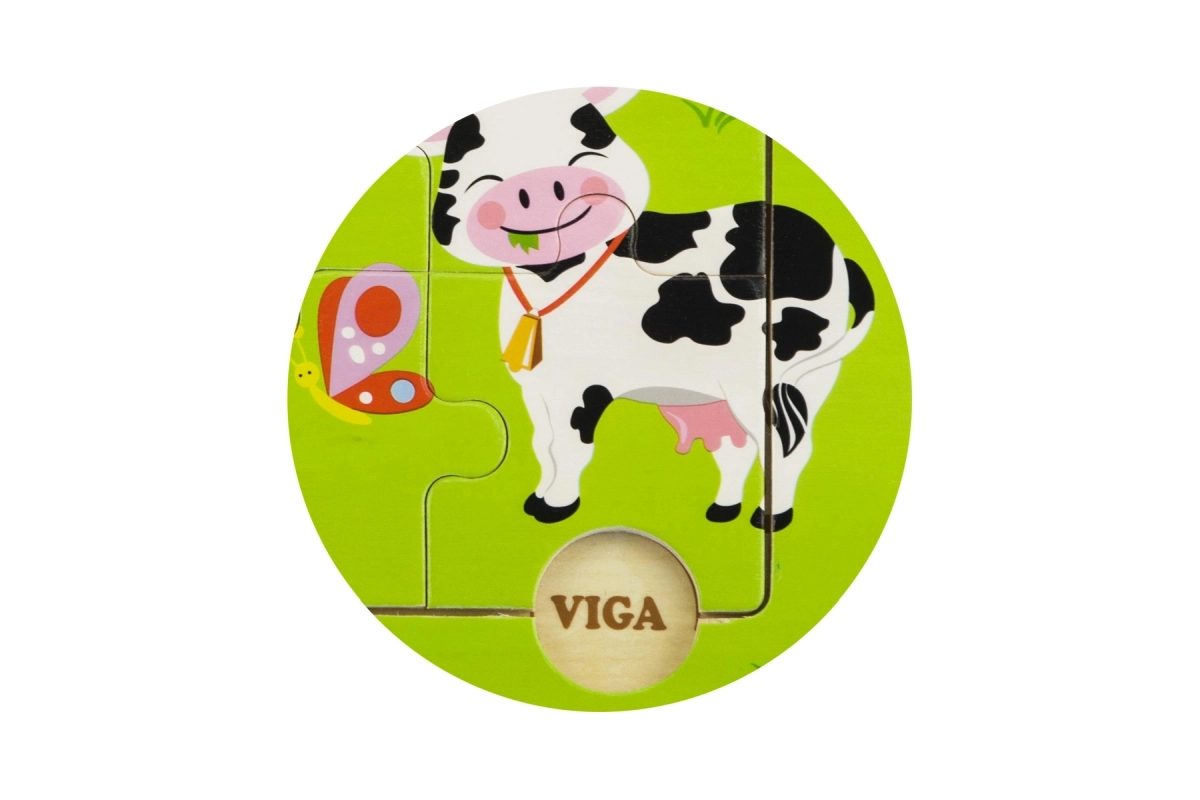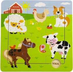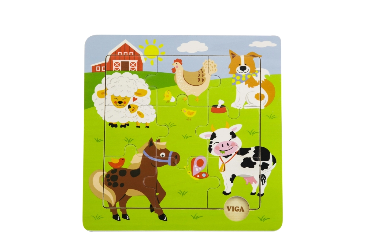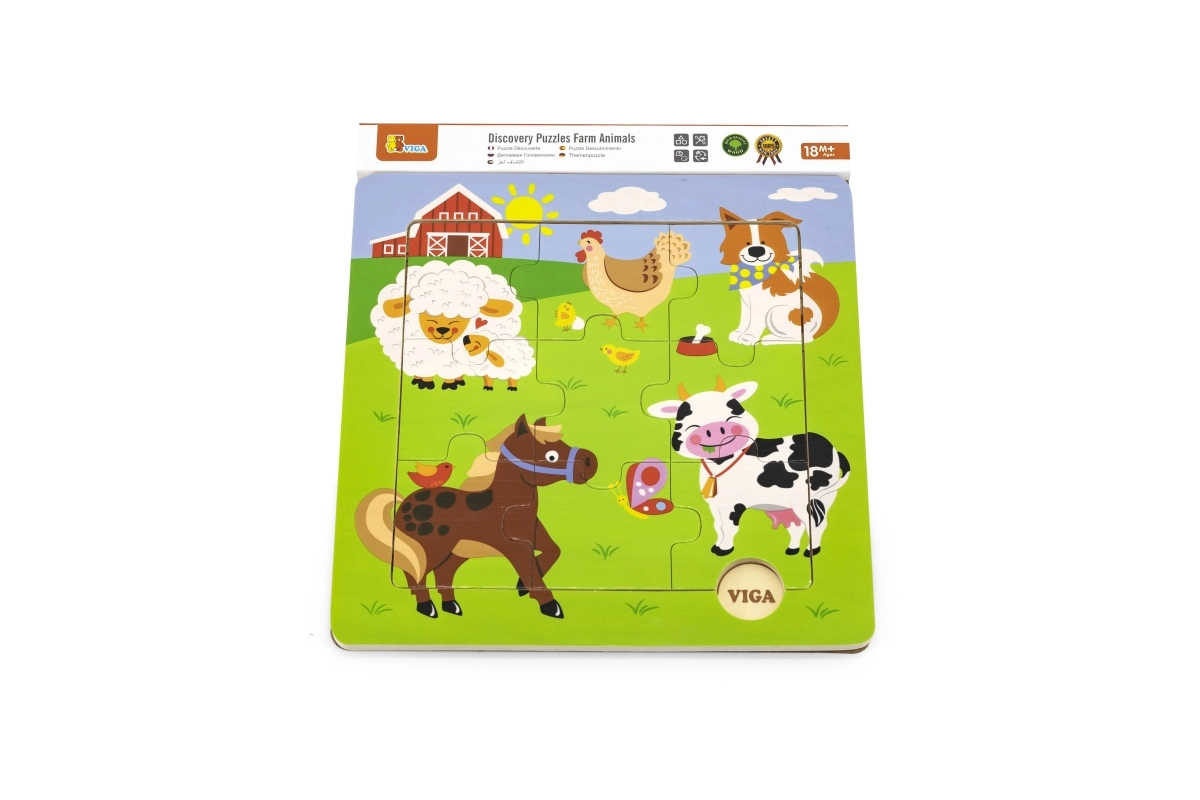 Dette træpuslespil med et sødt motiv af husdyr er et ideelt redskab til at udvikle børns færdigheder. Takket være de store, lette at gribe brikker lærer børn hånd–øje-koordination og træner både tålmodighed og koncentration. Den holdbare udførelse i træ sikrer lang levetid og sikker leg.