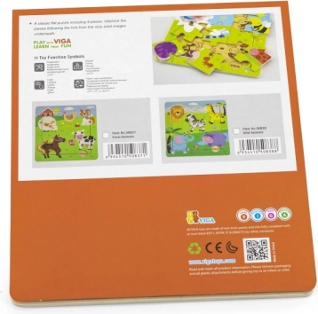 Disse træpuslespil med safaritema giver børn glæde ved at samle og understøtter samtidig deres naturlige udvikling. De store, lette brikker er tilpasset små børnehænder og hjælper med at træne koncentration samt genkendelse af former og dyr.