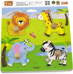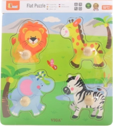 Dette kvalitets træpuslespil med fire zoo-dyr tilbyder sikker og stimulerende leg for tumlinger. Takket være de store træknopper kan børnene nemt gribe hver brik og lære at placere den korrekt – de får også hjælp af billedet under brikken, som leder til succes og glæde ved at gøre puslespillet færdigt.