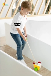 Denne rulle-gåvogn i form af en høne fra Viga er ideel til børn, der lærer at gå. Det farverige design fanger opmærksomheden og støtter udviklingen af koordination.