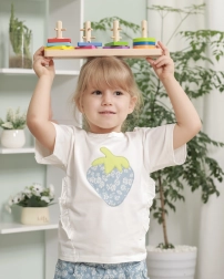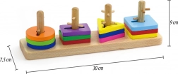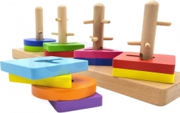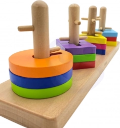 Ved at sætte forskellige former på træpindene understøtter legetøjet udviklingen af finmotorik og hånd-øje-koordination.