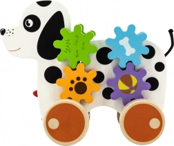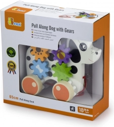 Denne træ-trækhund er designet til ikke kun at stimulere barnets fysiske aktivitet, men også dets kognitive færdigheder. Når hunden kører, drejer tandhjulene, hvilket skaber en interaktiv oplevelse for små opdagelsesrejsende.