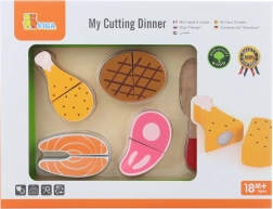 Hvert stykke kød er designet til realistisk at efterligne ægte madvarer. Børn kan bruge trækniven til at skære kødet og derefter sammensætte det igen med velcro. Sættet er en fantastisk tilføjelse til enhver børnekøkken og støtter kreativ leg.
