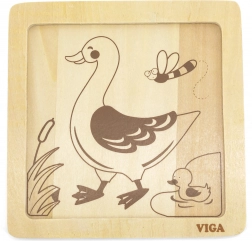 Viga træpuslespil indeholder fire tematiske brikker, som nemt samles på en billedplade. Hver brik er fremstillet af kvalitets træ og malet med sikre, ikke-giftige farver, som sikrer sikkerhed for både børn og miljø.
