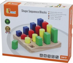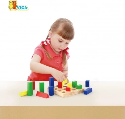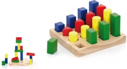 Børn sorterer og lægger farvede geometriske brikker på de rigtige pladser og tilegner sig naturligt former og farver.