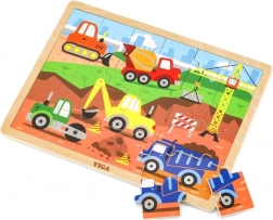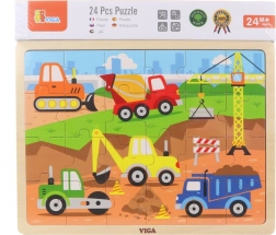Træpuslespillet med byggetema imponerer med klare farver og robust udførelse, som tåler daglig leg. Med 24 brikker er det et godt valg til det første “større” puslespil og støtter koncentration samt visuel perception.