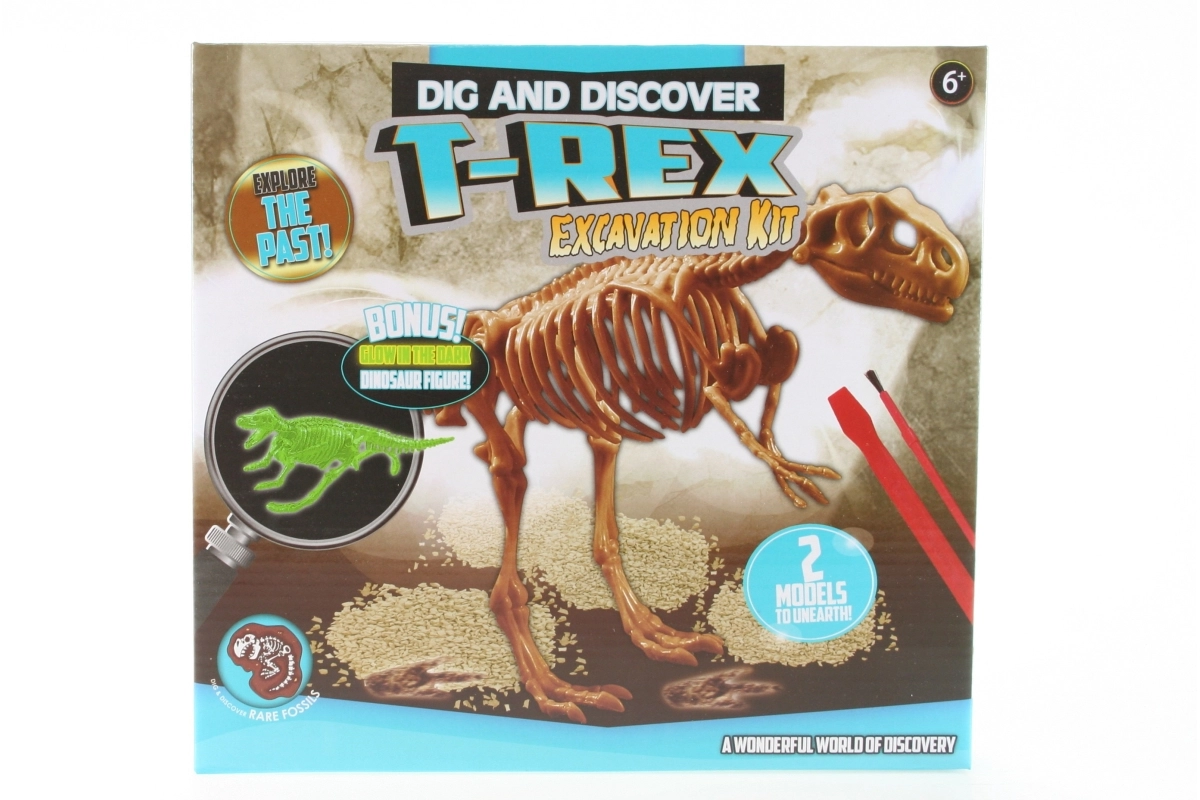 Forvandl hver dag til et paleontologisk eventyr. Børnene udgraver først forsigtigt knoglerne fra udhugningsblokken og samler derefter et realistisk T‑Rex‑skelet af 10 dele. Der medfølger desuden en glødende figur, som lyser børneværelset op i mørke.