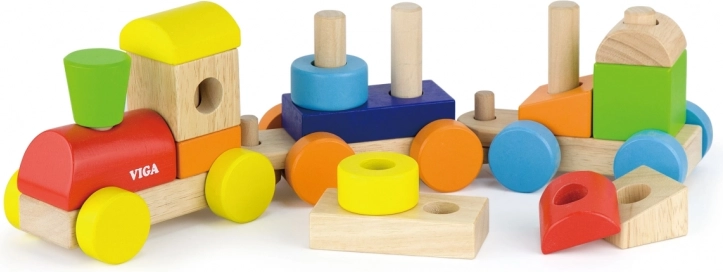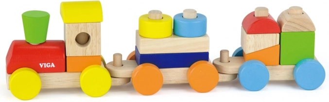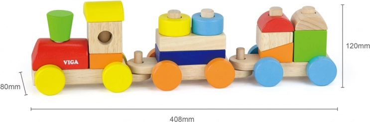 Træstablings-tog VIGA 41 cm. Sikkert læringslegetøj til børn fra 18 måneder, udvikler motorik, farver og former. Kvalitets trædesign.