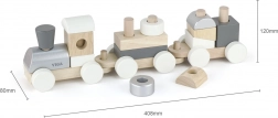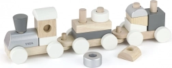 Toget består af aftagelige dele og rullende undervogne, så små byggere kan nyde både byggeri og kørsel. En oplagt gave, der både glæder og støtter barnets tidlige udvikling.