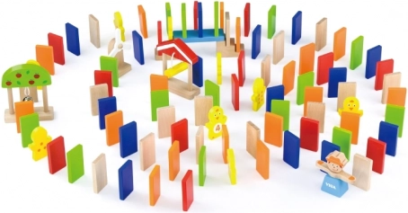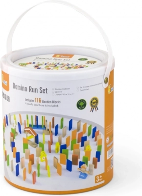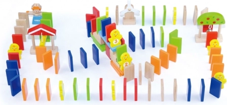 Spillet udvikler nøglefærdigheder: træner hånd-øje-koordination, styrker koordination, præcision i bevægelser samt samarbejde mellem børn. Når banen er bygget, skal du blot skubbe til den første brik og nyde glæden ved den perfekte dominoeffekt. Den praktiske spand med håndtag gør det let at opbevare og transportere.