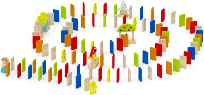 Viga trædomino Gård giver børn uendelige muligheder for at bygge og udforske. Takket være de forskellige former – fra klassiske rektangulære brikker til tematiske elementer som kyllinger og gårdtilbehør – kan du nemt skabe originale baner, små broer og sjove forhindringer. Kvalitetstræ og sikre farver sikrer lang holdbarhed og tryg leg.