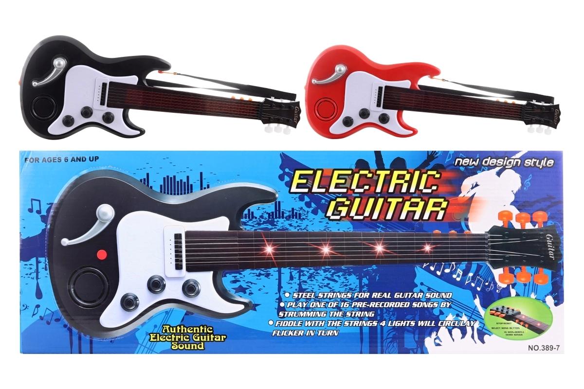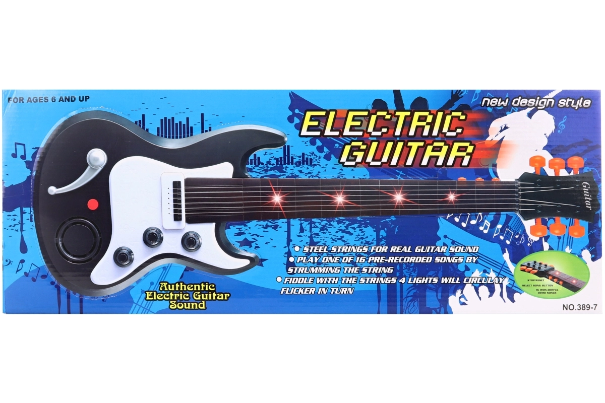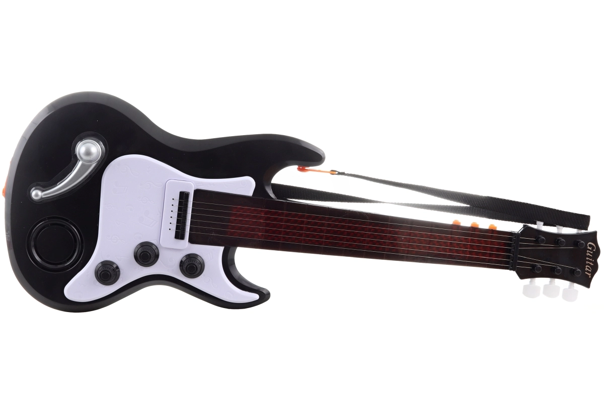 Denne elektroniske børneguitar er et fremragende valg til de første musikalske skridt. Med en kompakt længde på ca. 55 cm ligger den godt i små hænder og motiverer børn til at udvikle rytme, hørelse og kreativitet. Strøm via 3× AA-batterier (medfølger ikke) gør det muligt at spille når som helst og hvor som helst uden behov for stikkontakt.