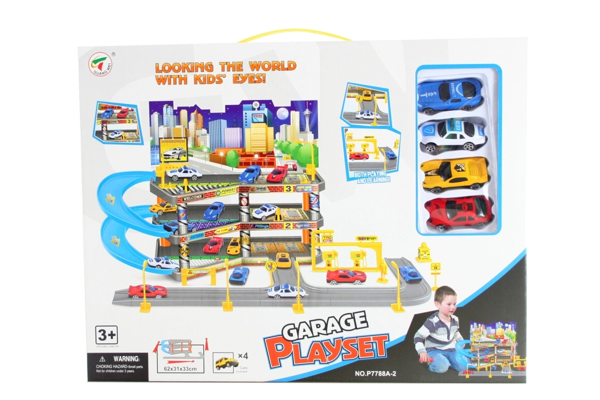 Oplev sjov på tre niveauer med dette tretages parkeringshus til børn. Sættet inkluderer 4 små biler, så I kan begynde at lege med det samme. Parkeringshuset har generøse mål 62 × 31 × 33 cm, er ideelt til børn fra 3 år og byder på masser af plads til kreativ leg og ræs.