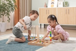 Dette smarte Montessori-spil støtter læring gennem leg: Børnene sætter og arrangerer perler på pinde i den rækkefølge, som mønsterkortene angiver. På en legende måde udvikler de øje–hånd-koordination, koncentration og tålmodighed, samtidig med at de styrker kendskab til farver, former og sekvenser.