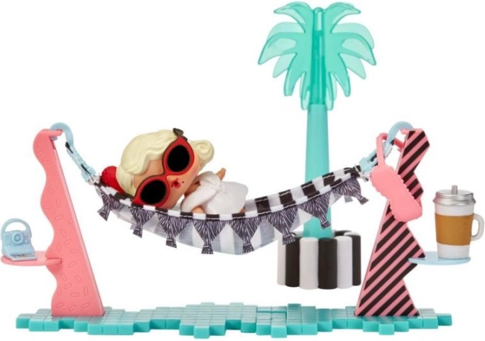 Træd ind i L.O.L. Surprise-universet med sættet “Feriehygge – Leading Baby”. Åbn æsken og opdag mere end 10 fantastiske overraskelser, inklusive dukke, afslappende hængekøje, palme og tematisk tilbehør. Emballagen foldes nemt ud til et legeunivers, så du kan nyde drømmeferien med det samme.