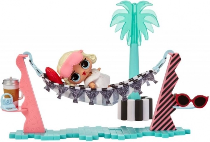 Nyd feriehygge med den populære L.O.L. Surprise-dukke i møbelserie 6 med tilbehør. Pak mere end 10 overraskelser ud, forvandl emballagen til en selvstændig legeplads, og skab et tropisk hjørne med hængekøje, palme og stilfuldt tilbehør. Kompatibel med OMG Hus 2, ideel til kreativ og fantasifuld leg.