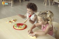 Forskellige træ-toppings (fx svampe, peberfrugt, tomater) stimulerer fantasien og lærer farver og former.