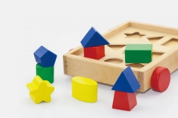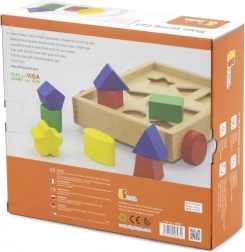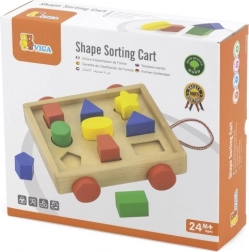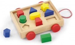 Træindsætning – vogn tilbyder børn en sjov og lærerig måde at forbedre finmotorikken på. Sættet består af en vogn med målene 24,5 x 22 x 7 cm og 9 farverige klodser i forskellige former, som skal placeres korrekt. Denne vogn motiverer børn til leg, mens de lærer formgenkendelse.