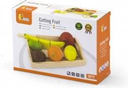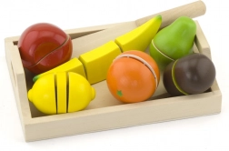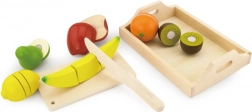 Frugten og kniven er lavet af naturligt træ, hvilket sikrer sikkerhed og holdbarhed under legen.